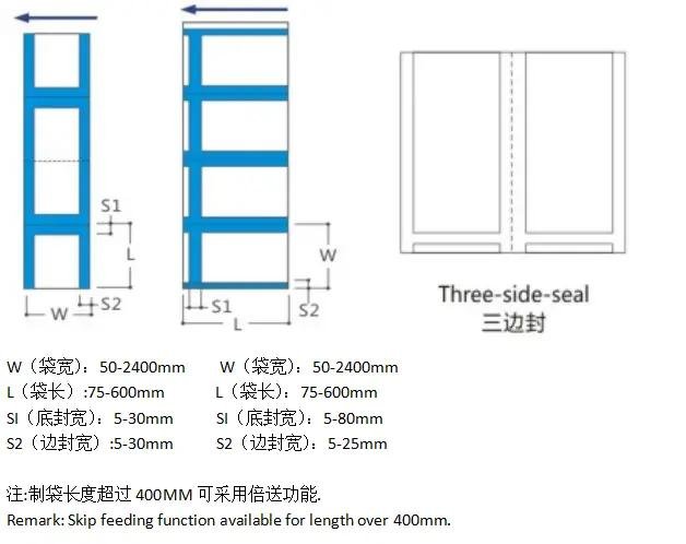 The Three Side Sealing Bag Making Machine features a well-designed structure that ensures ease of operation and a high level of automation. This machine is capable of producing three side sealing pouches using various laminated materials, including plastic-plastic, paper-plastic, and paper-paper combinations.